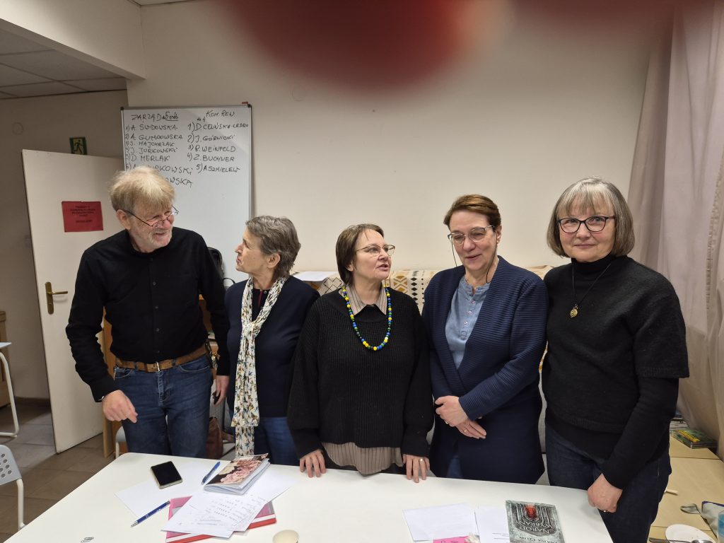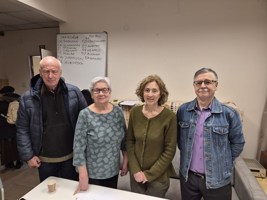 11.12 2024 gościliśmy Pod Dwójką Mariana Turskiego. Czekaliśmy na to spotkanie od dawna. Poprowadził je nasz niedawno przyjęty członek – Jarek Kurski. Zanim do nas dotarł nasz Mędrzec, mieliśmy czas by Jarkowi uroczyście wręczyć legitymację Drugiego Pokolenia, co było dla nas ważnym zdarzeniem. Czy da się opisać to spotkanie z panem Marianem??? Było niezwykłe, szczere, ciepłe. Mówił, odpowiadając na mądre i dociekliwe pytania Jarka, o swojej drodze „ideowej”, idącej wbrew woli jego ukochanego Ojca, o swoich decyzjach (i ich motywacjach) w okresie Marca i potem, o swoich rodzinnych przeżyciach (m. in. niezwykła historia odnalezienia się po wojnie z Mamą). Z wpisów w rozlosowanych wśród nas książkach można się dowiedzieć, że czuł się u nas naprawdę dobrze, przekazał też swoją prośbę do nas, byśmy wsparli organizację Żydów-kombatantów, zaangażowanych w aktywność Rady Oświęcimskiej. Będziemy się tym zajmować, bo to nasz obowiązek a poza tym – p. Marianowi się nie odmawia! Na końcu wręczyliśmy panu Marianowi prezent: prześliczny obrazek Hani Kossowskiej (bardzo, bardzo dziękujemy!!!), z napisem oznaczającym niewypowiadane Imię. To akurat Imię jest amuletem ochronnym, który ma nam pomóc w przekształceniu trudności w błogosławieństwo. Taki symbol wydawał się nam bardzo przystający do naszego Gościa.